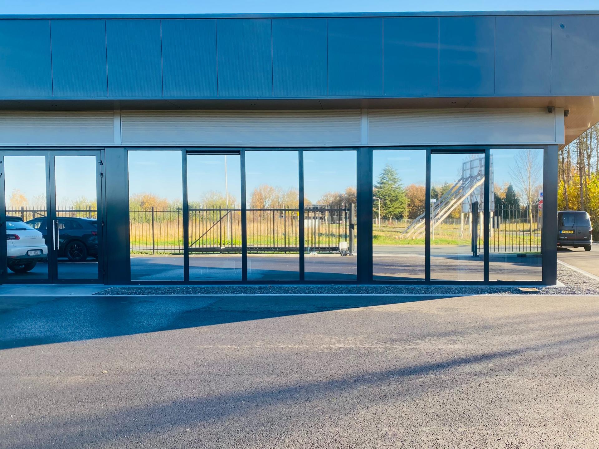 Wij hebben hier een Sentinel Silver OSW van 20% licht doorlatend gemonteerd. Deze folie heeft een warmtewering van meer dan 85% en zorgt door zijn spiegelende uitstraling dat er niet meer naar binnen gekeken kan worden.