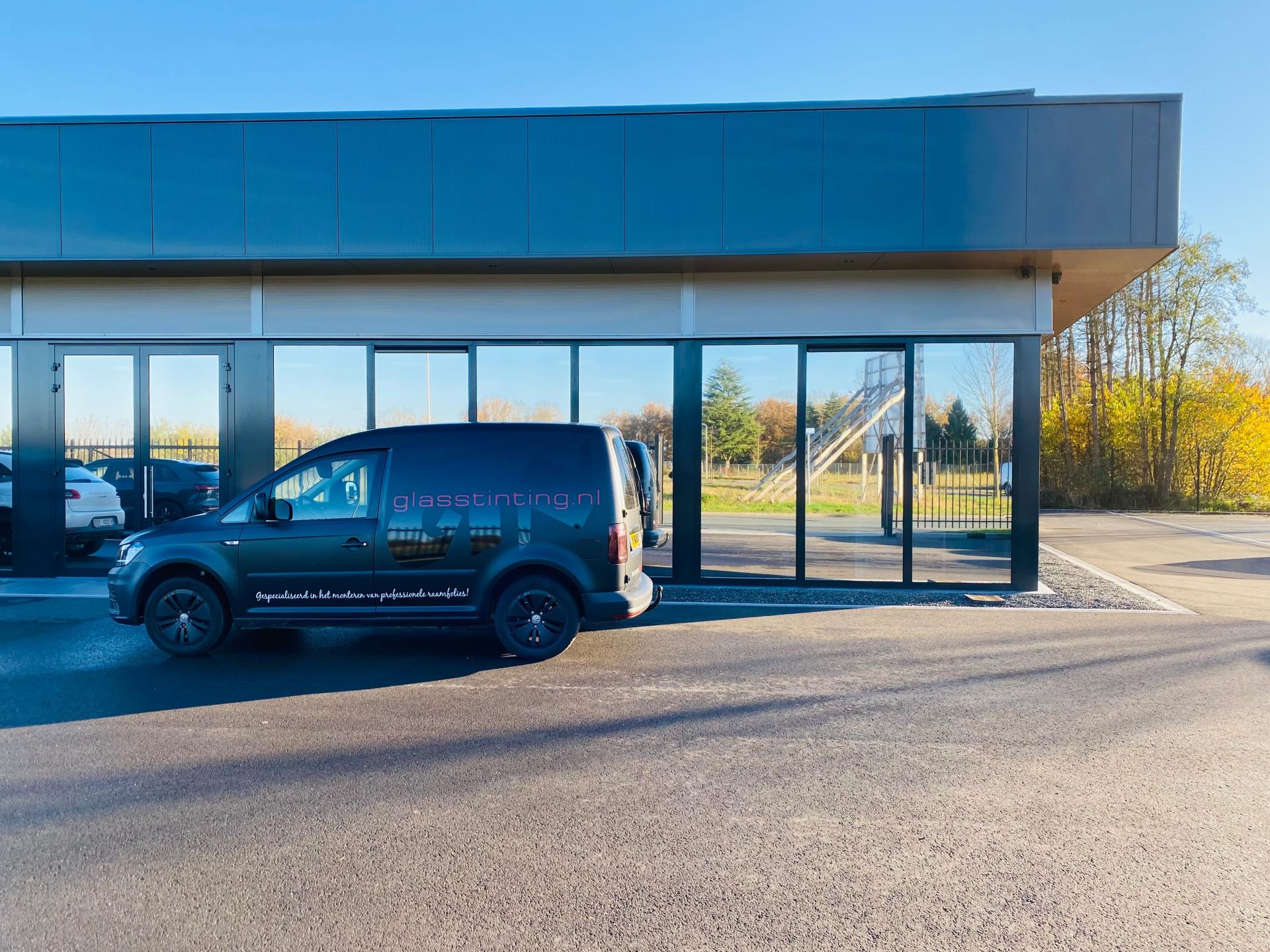 Wij hebben hier een Sentinel Silver OSW van 20% licht doorlatend gemonteerd. Deze folie heeft een warmtewering van meer dan 85% en zorgt door zijn spiegelende uitstraling dat er niet meer naar binnen gekeken kan worden.